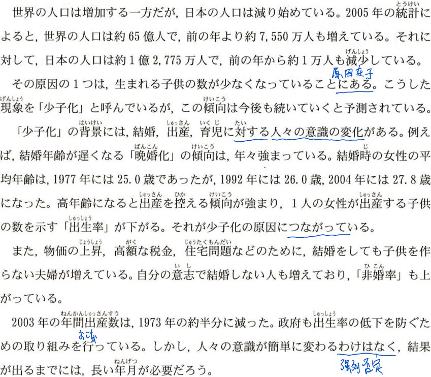 课文:日本の人口が減っているー少子化